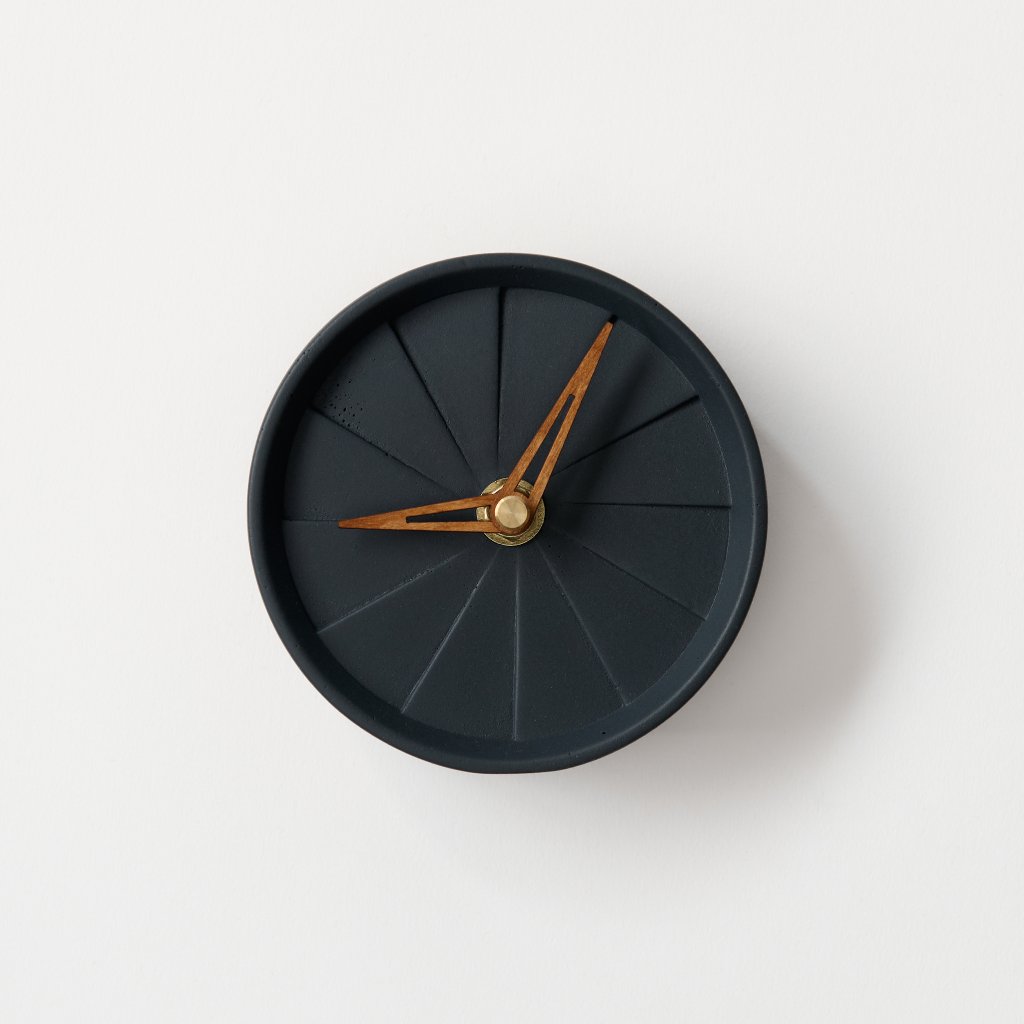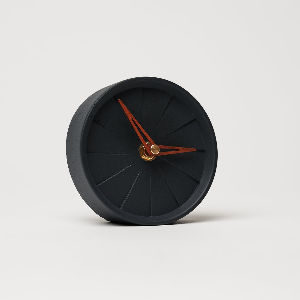 Concrete table clock Pie – graphite (Black) – 10,5 cm – Brown Hands