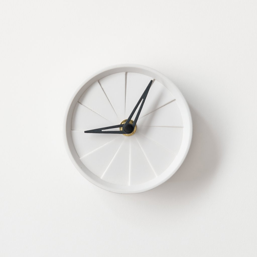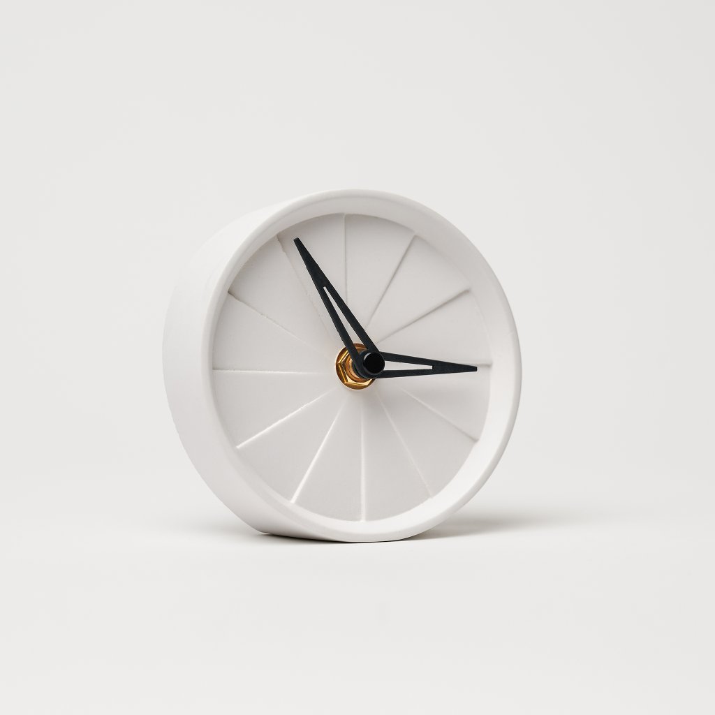 Concrete table clock Pie – White – 10,5 cm – Black Hands