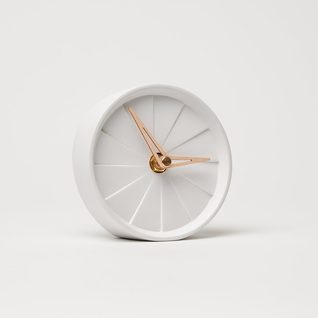 Concrete table clock Pie – White – 10,5 cm – Light Hands
