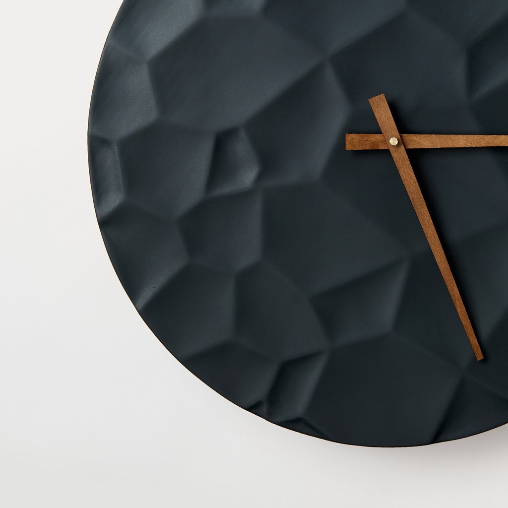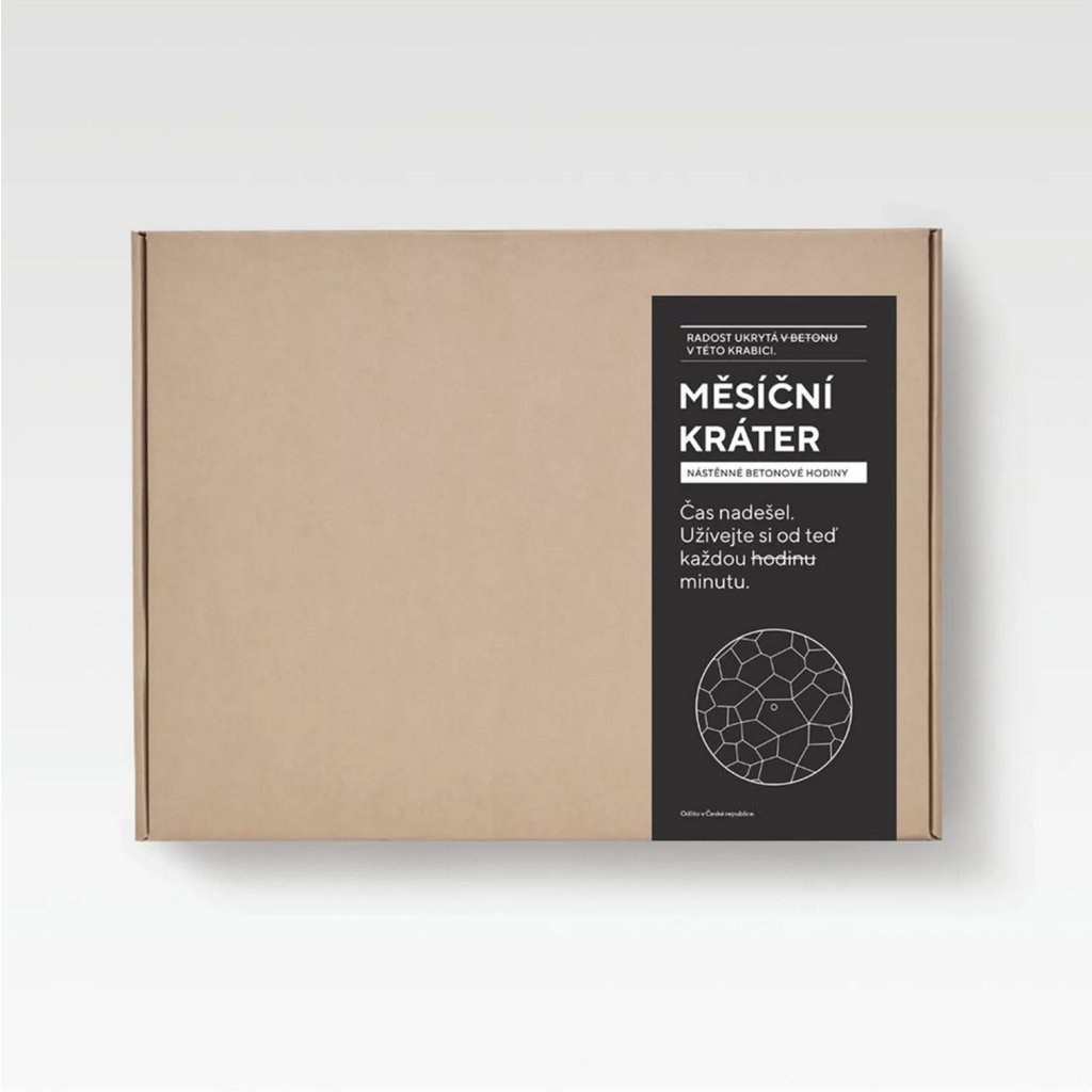 Minimalist Concrete Clock Moon Crater – 50 cm in Graphite (Black) – Handcrafted in the Czech Republic.