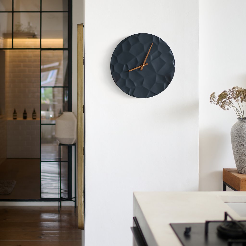 Mounting and stability are secured with durable stainless steel components, guaranteeing safe wall installation. The clock is perfect for the living room, kitchen, office, or bedroom. Each piece is unique thanks to handmade production.