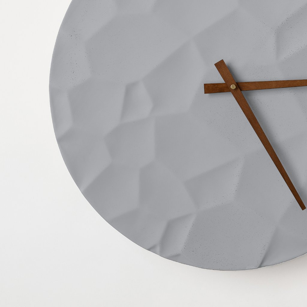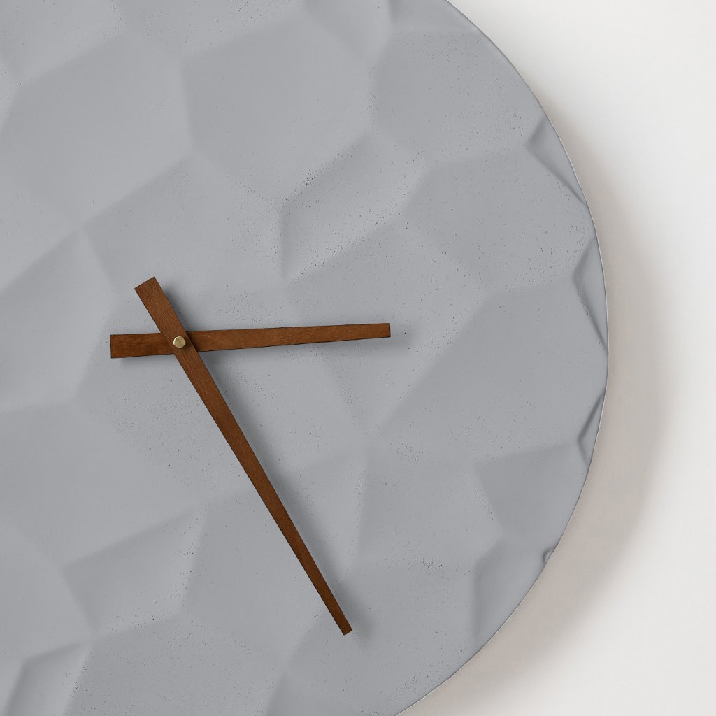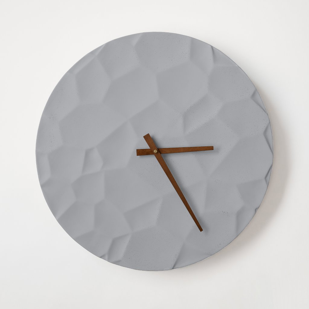 Minimalist Concrete Clock Moon Crater – 50 cm in Gray – Handcrafted in the Czech Republic.
