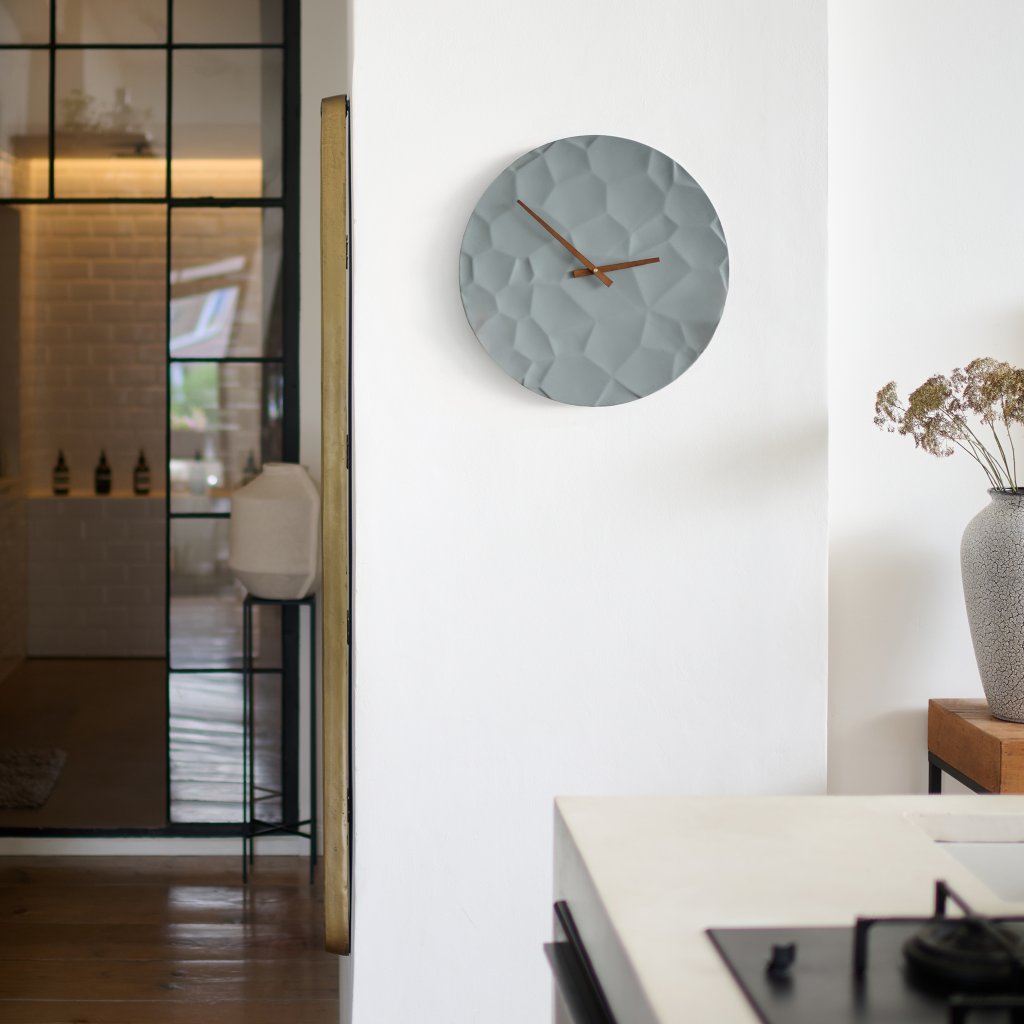Mounting and stability are secured with durable stainless steel components, guaranteeing safe wall installation. The clock is perfect for the living room, kitchen, office, or bedroom. Each piece is unique thanks to handmade production.