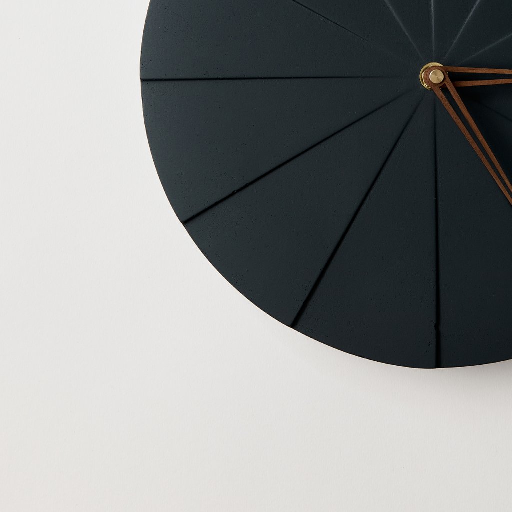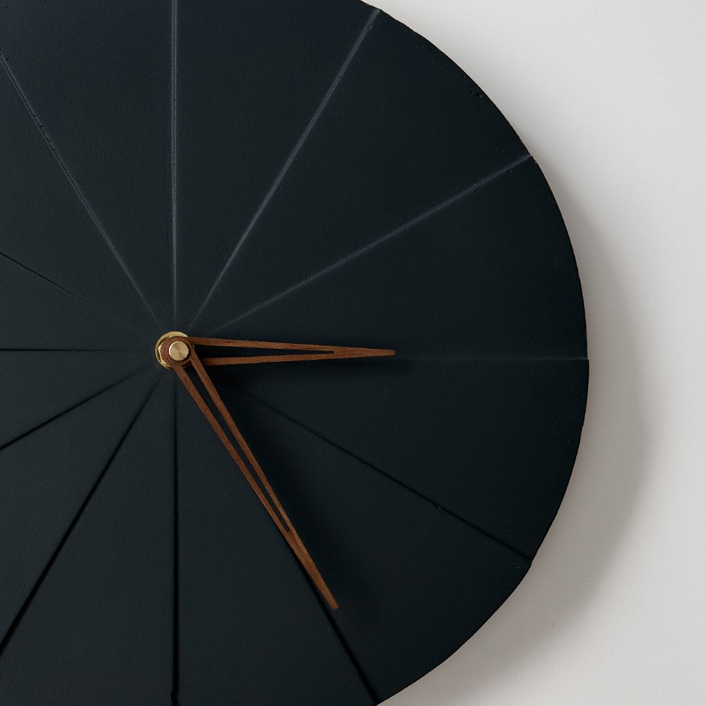 Concrete Wall Clock Pie – Graphite (Black) – 28,5 cm – Brown Hands