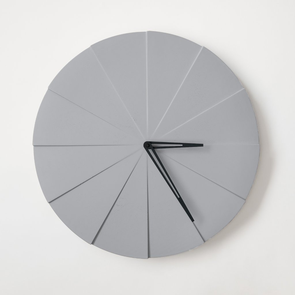 Concrete Wall Clock Pie – Gray – 50 cm – Black Hands