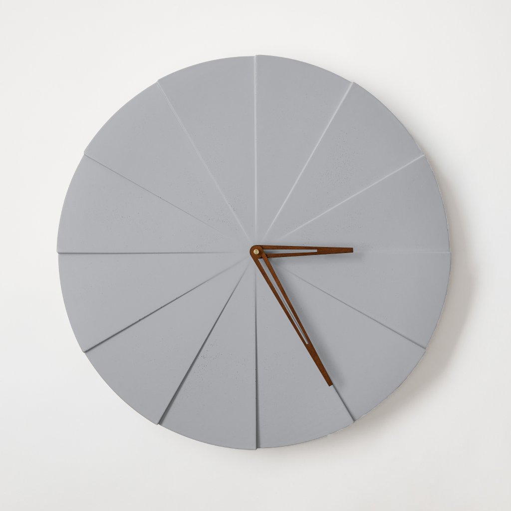 Minimalist Concrete Clock Pie – 50 cm in Gray – Handcrafted in the Czech Republic.