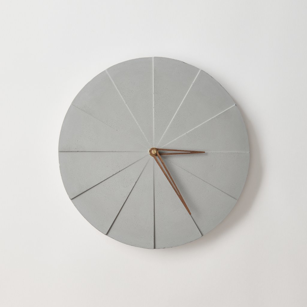 Concrete Wall Clock Pie – Natural – 28,5 cm – Brown Hands