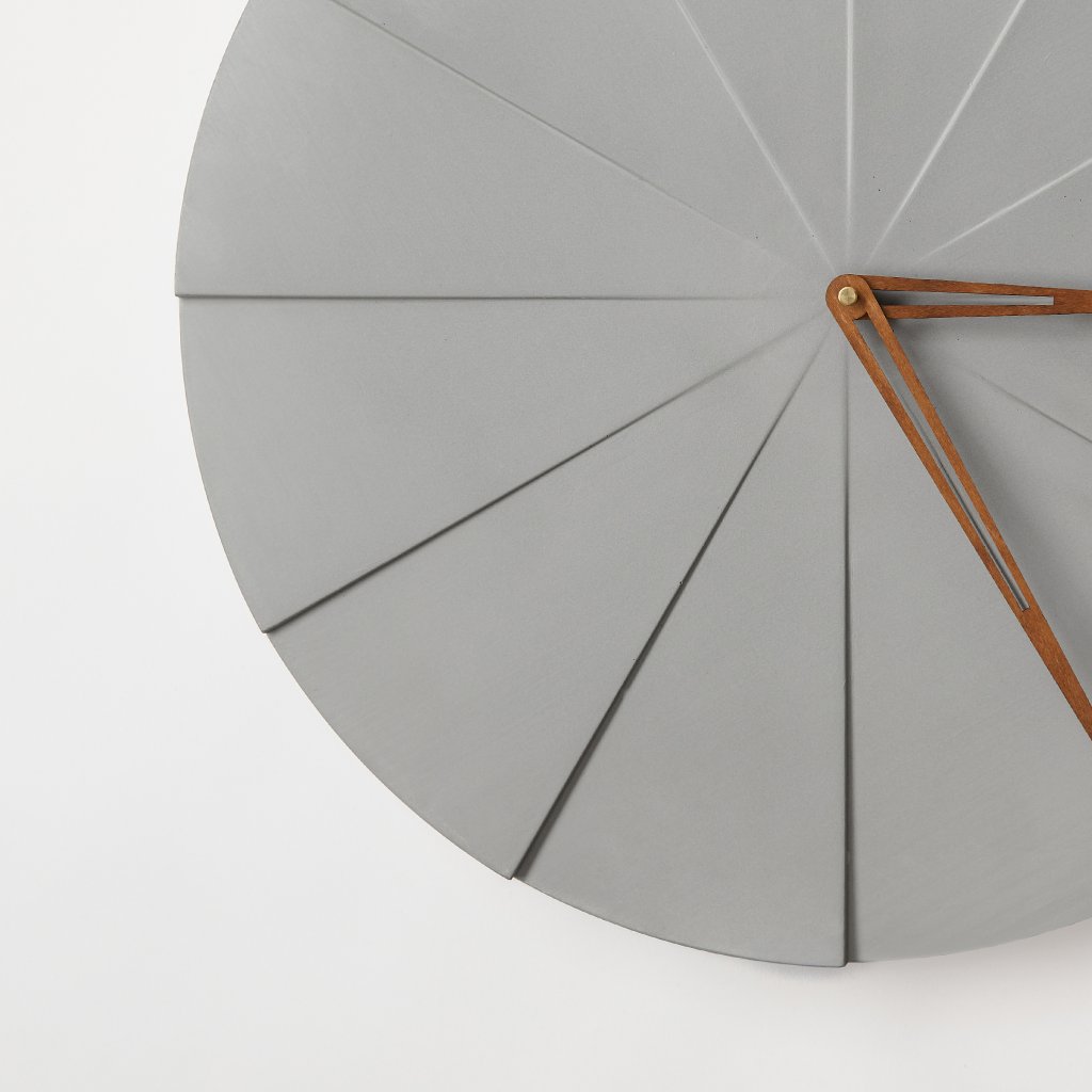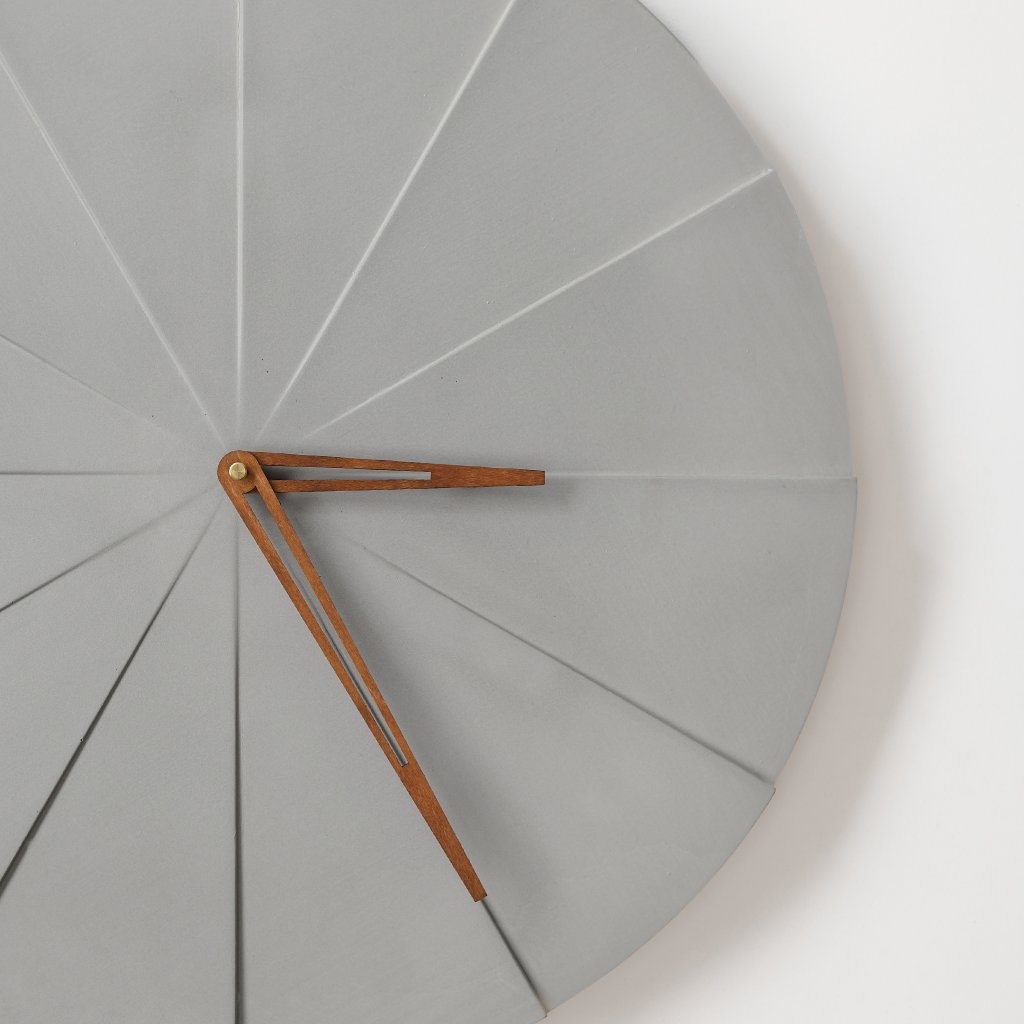 Concrete Wall Clock Pie – Natural – 50 cm – Brown Hands