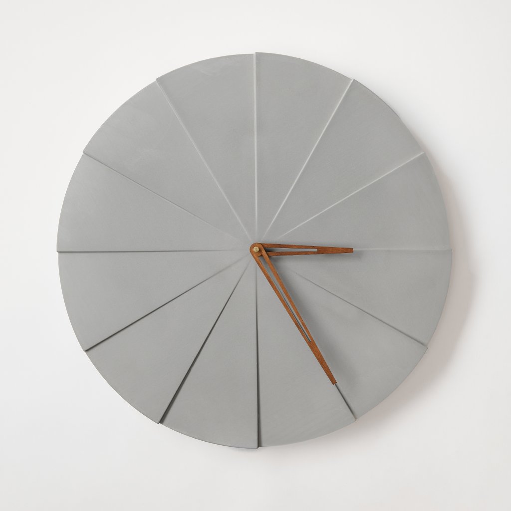 Minimalist Concrete Clock Pie – 50 cm in Natural – Handcrafted in the Czech Republic.