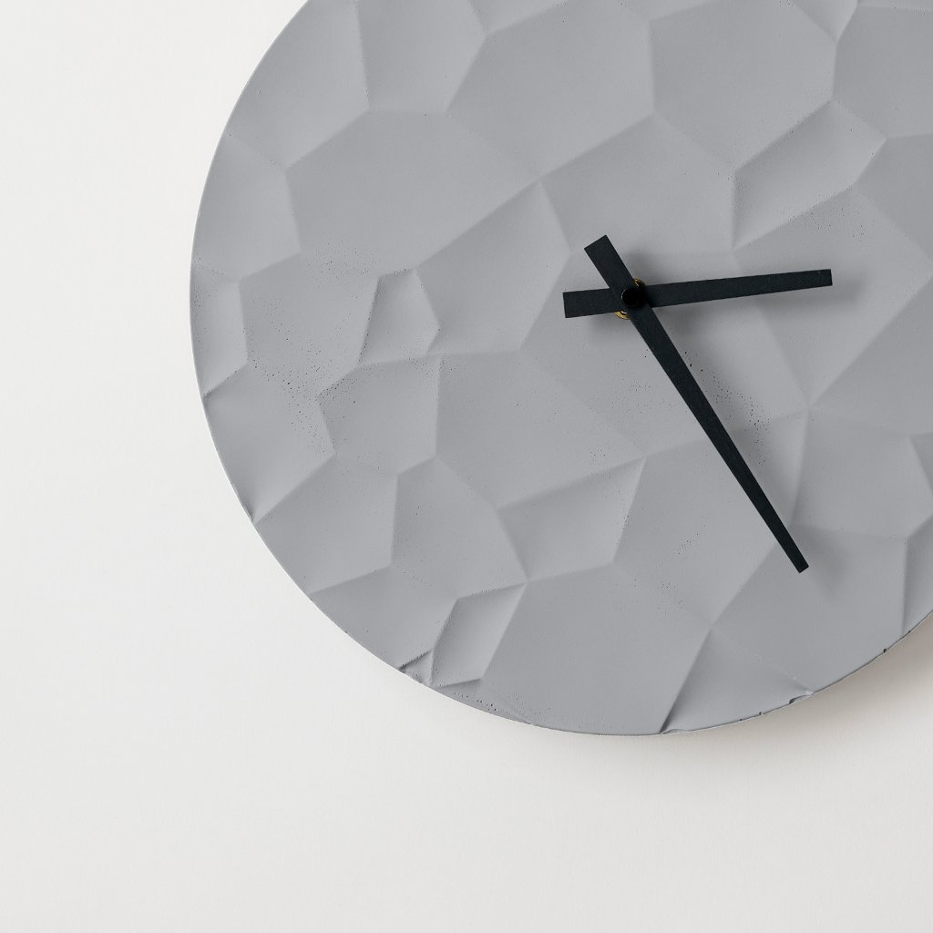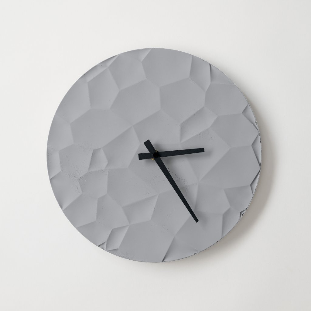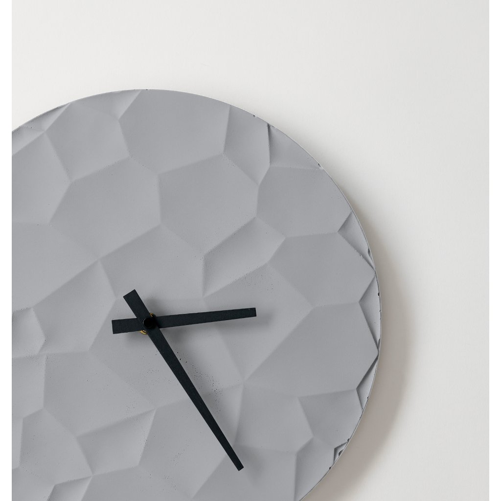 Minimalist Concrete Clock Moon Crater – 30 cm in Gray – Handcrafted in the Czech Republic.