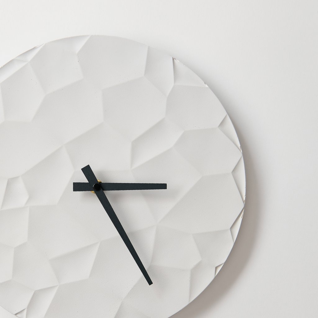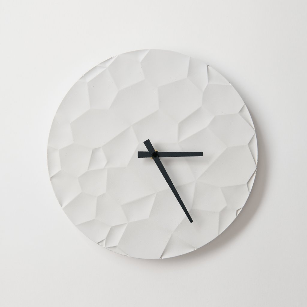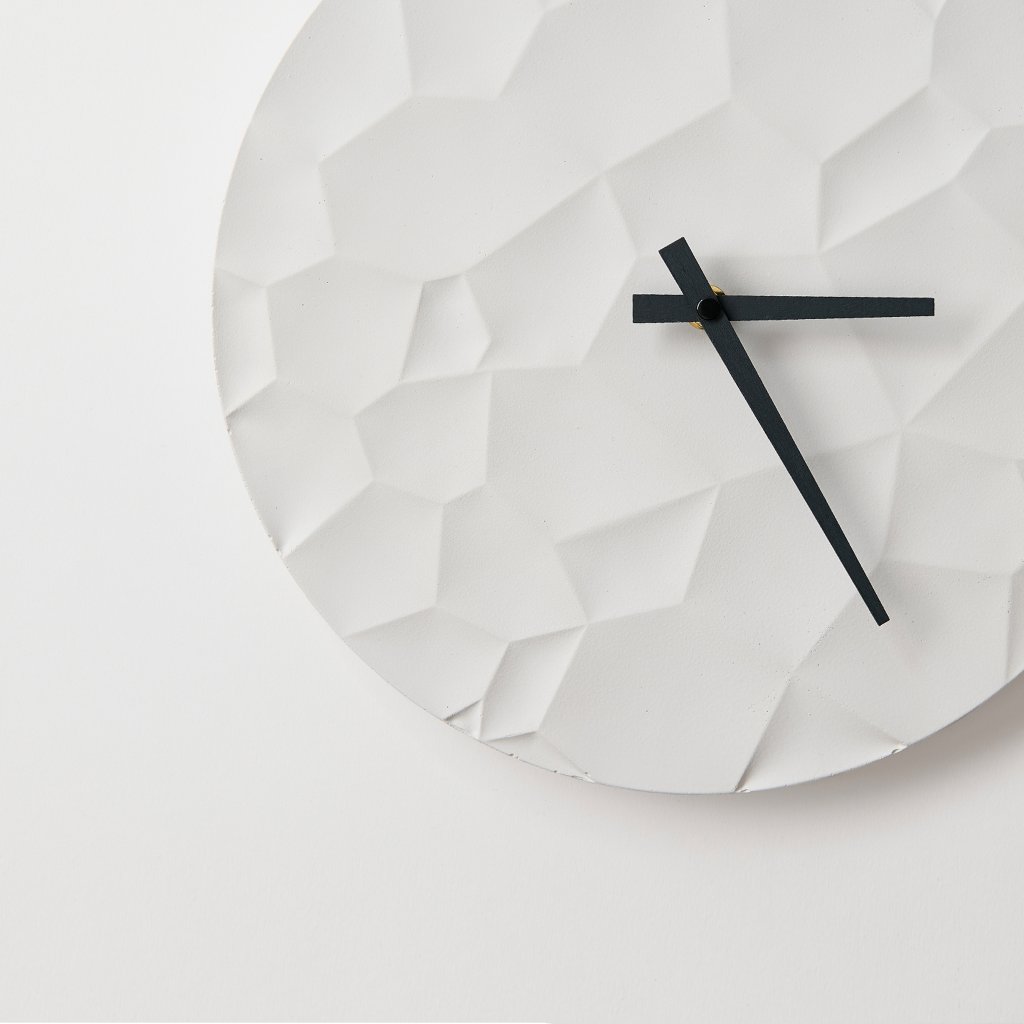 Minimalist Concrete Clock Moon Crater – 30 cm in White – Handcrafted in the Czech Republic.