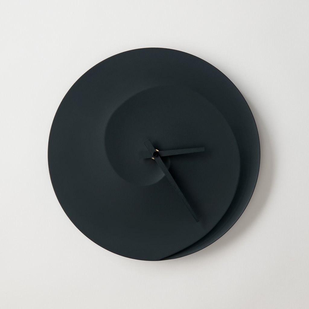 Minimalist Concrete Clock Spiral – 30 cm in Graphite (Black) – Handcrafted in the Czech Republic.